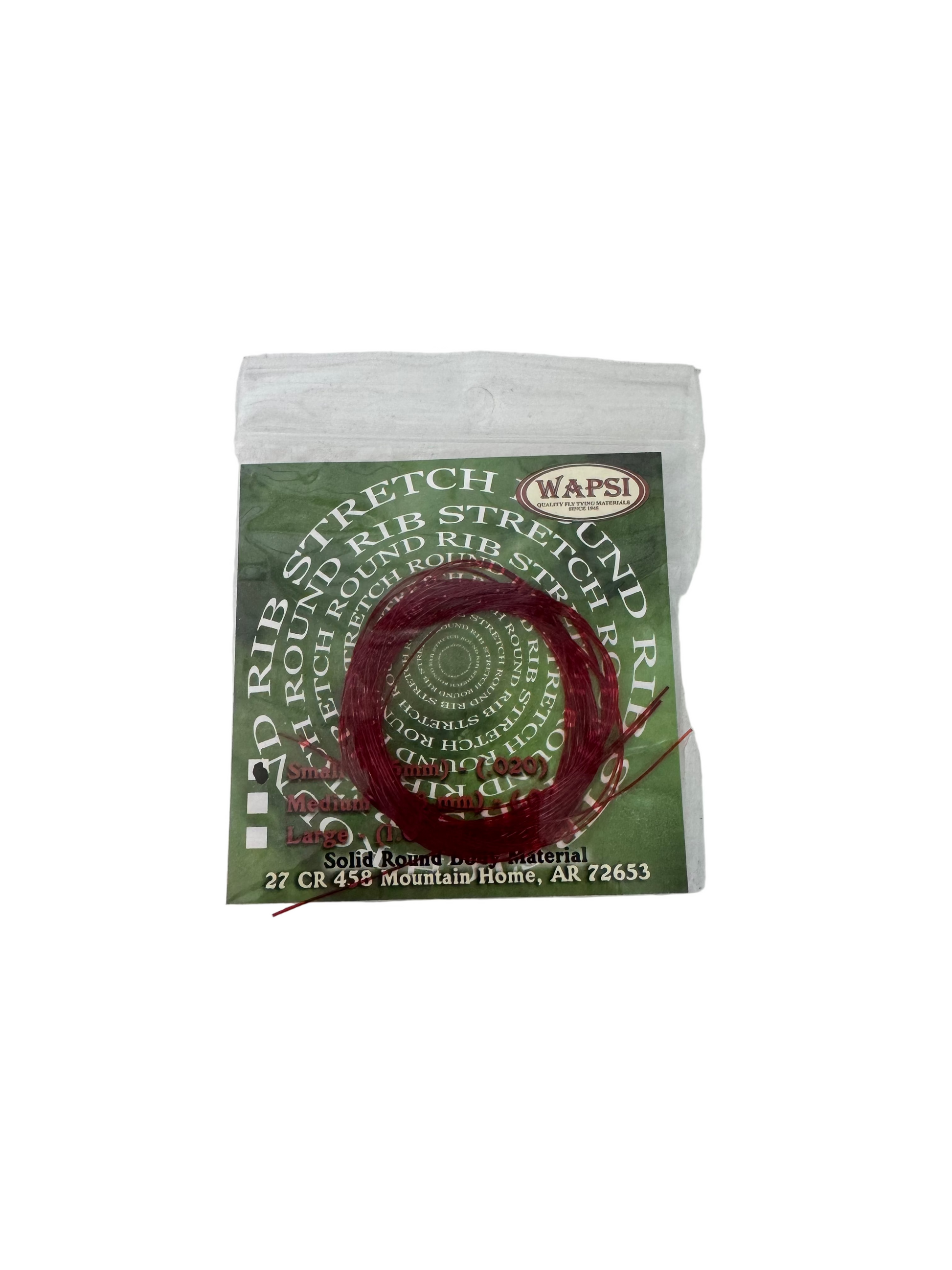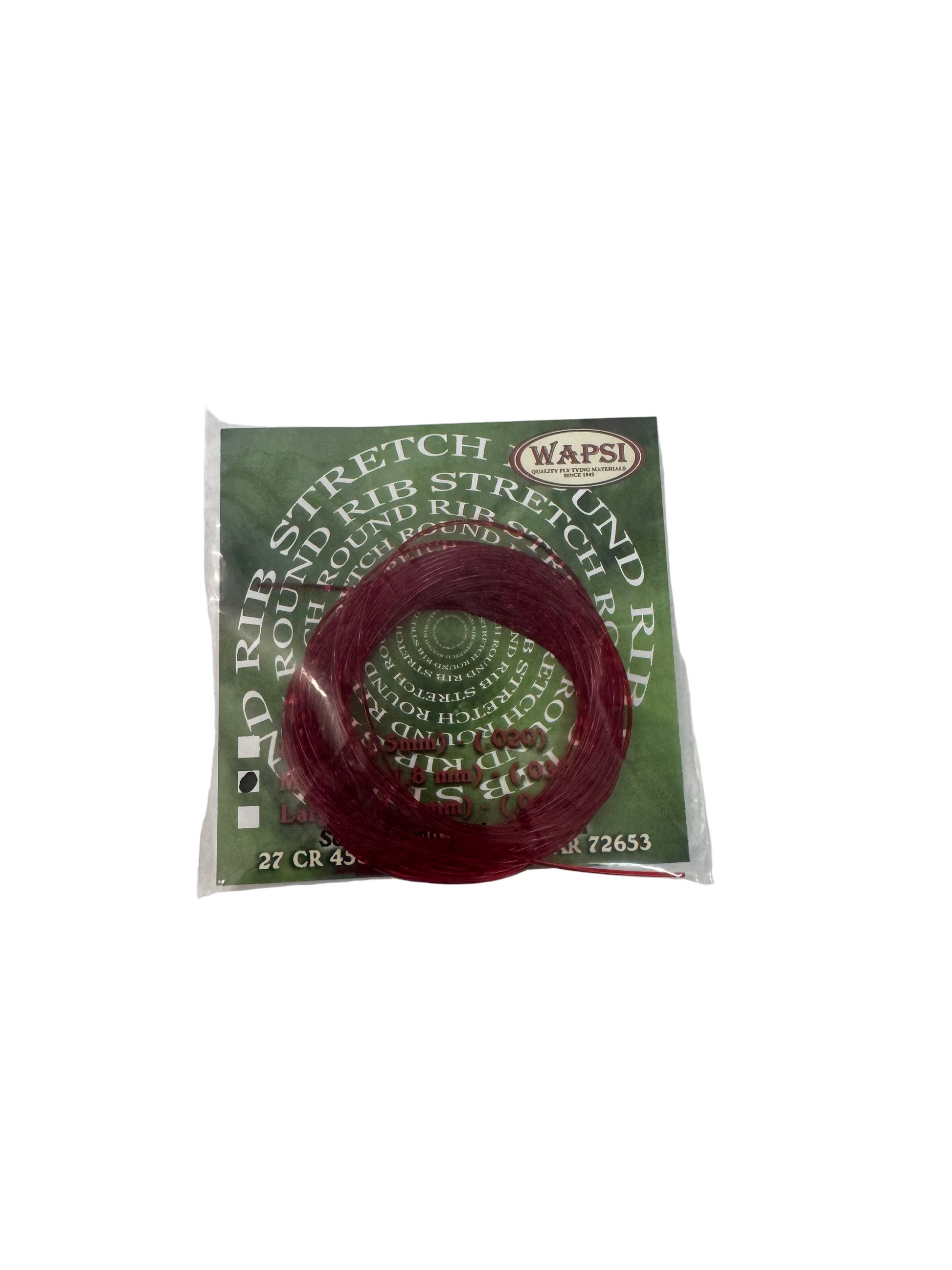 Solid round body material with tremendous stretch. It is used to rib bodies. Try dubbing directly to the stretch round rib then wrap fuzzy bodies that are translucent. This technique is referred to as "Fuzzeling".